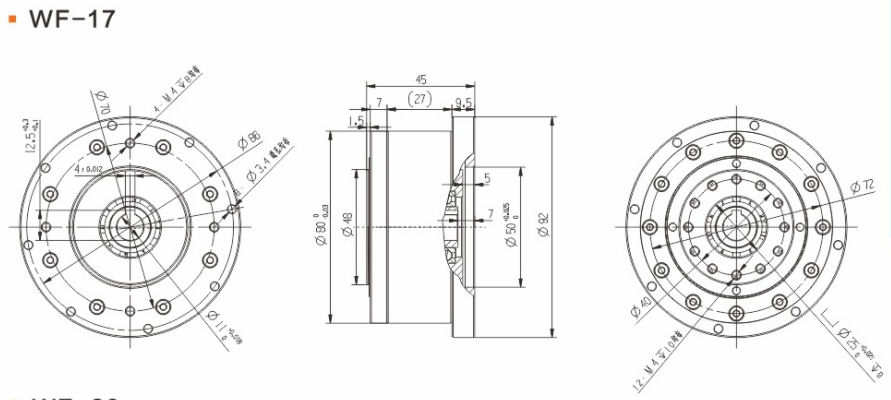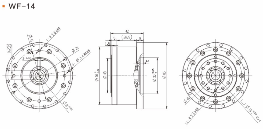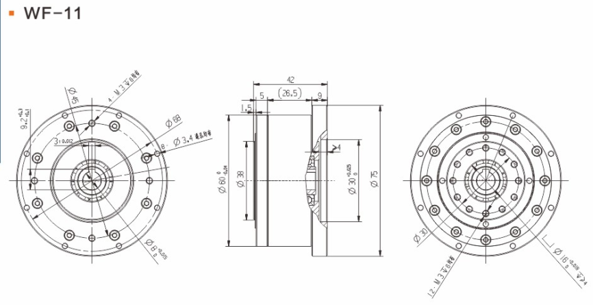具有傳動效率高、工作平穩(wěn)、噪聲低、結構緊湊、重量輕、體積小、使用可靠、壽命長、減速比范圍大等優(yōu)點。 輕量流線型設計、鋼質(zhì)本體、機型輕薄短小、體積比傳統(tǒng)行星式減速器大幅縮小、可節(jié)省安裝空間。 真圓齒形、齒腹大、抗壓性強、不干涉不崩齒、可承受頻繁正逆轉和瞬間急停慣性沖擊。 雙排結構、負載分散、機理平衡、圓形齒輪設計、磨損小、噪音和溫升要比其他減速器低。 線接觸傳動、摩擦系數(shù)小、效率高、出力扭矩大、慣量低、是一種精密的剛性傳動,剛性傳動軌跡也最接近理想工作曲線,這和部分原件使用滾動件的擺線式或和諧式傳動設計有些許不同。 由于雙共軛工作曲線和撓性軸銷輸出裝置的改良設計、本機高精度背隙可控制在弧秒范圍。 長效性油脂潤滑、不需要保養(yǎng)、安裝方向不受限。 人力方式有筒夾緊式和鍵槽式供選用。