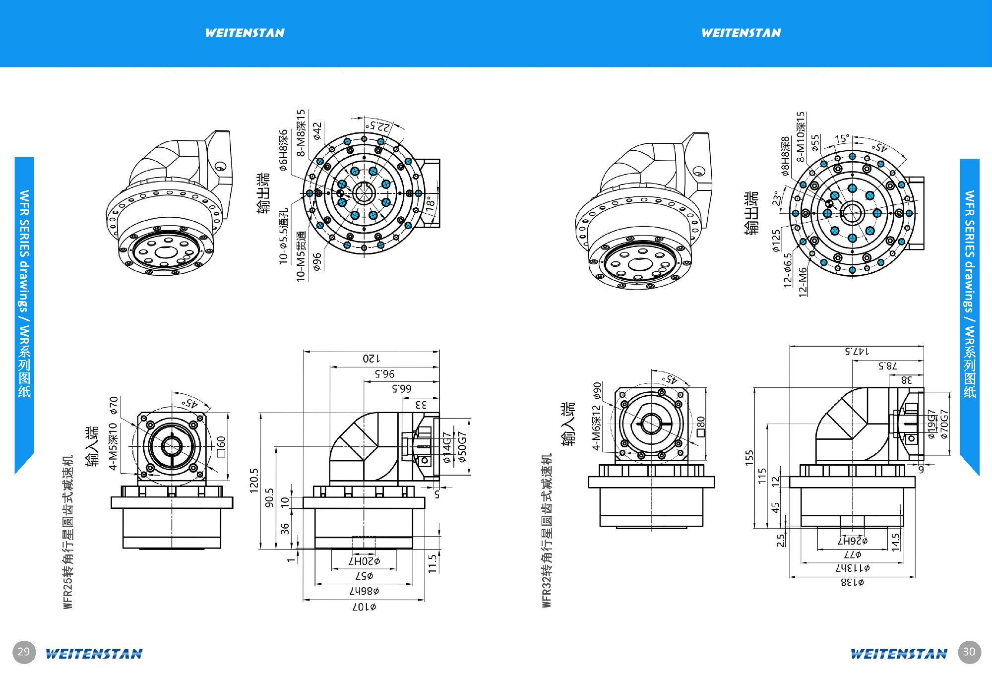 WFR系列時帶法蘭的高精度減速機,其特點時輸入和輸出的角度為90°,可大大節(jié)省安裝空間、模塊化設(shè)計可以通過法蘭安裝電機和減速機。